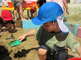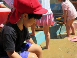 昨日は少し躊躇していた子も、手で泥をすくったり座り込んだりして泥の感触を楽しんでいました! |