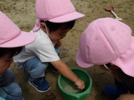 昨日のホームページでは以上児さんの外遊びの様子をお伝えしましたが、2歳児さんも元気に園庭で遊びました🎵