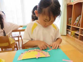 絵の具で色を塗ったり、色紙で飾りつけをしたり、各クラス、とても素敵なプレゼントが出来上がりました🎵 |
