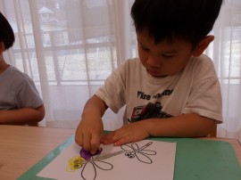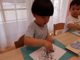 手首をたくさん動かす経験が、点や線、円を描く姿につながっていきます(*^^*) |