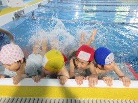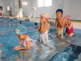 たんぽぽ組さんもにこにこ笑顔でプールに入りました(*^^*) |
