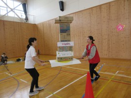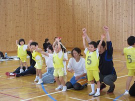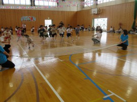 今年のレクレーションタイムはネットをくぐってお菓子を取りに行きました(*^^*) |