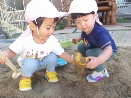 お砂場はどの年齢の子ども達にも大人気🎵 |