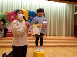 今日は保護者の皆さんもお祝いに来てくださり、お子さんの成長した姿をお話ししてくれました。 |