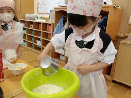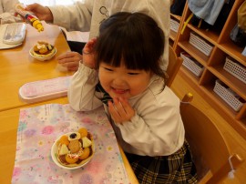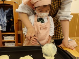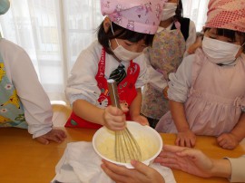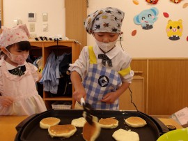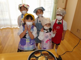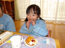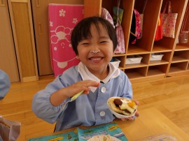 早くパンケーキを食べたくて、今日はいつもより早く給食を食べていた子ども達。 |