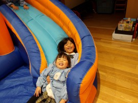 ホールに大型のフワフワ遊具が出現しました!しかも2台も!