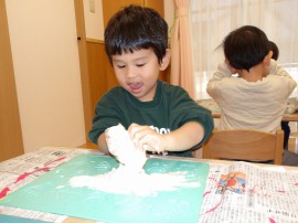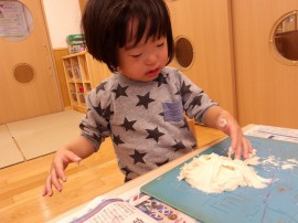 小麦粉やお水を混ぜて先生が小麦粉粘土を作ってくれました!