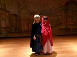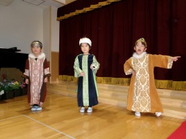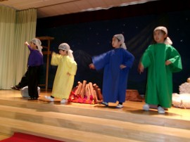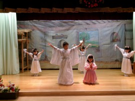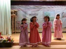 馬小屋の中でお生まれになったイエス様をおがみにたくさんの人が訪れ、全員が舞台に揃いました! |
