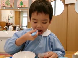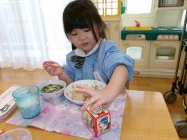 今日はみんなでイエスさまおめでとうございますと手を合わせ、お祈りをしました。