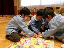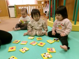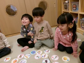 ちゅうりっぷ組さんもみんなでかるた遊びを楽しみましたよ(*^^*) |