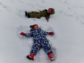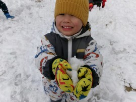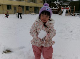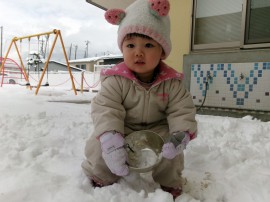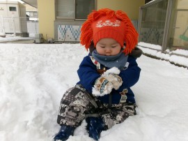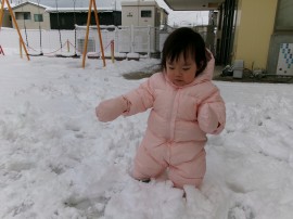 初めての雪遊びかな? |