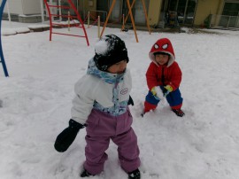 お友だちとの雪合戦も楽しいね(*^^*) |