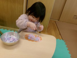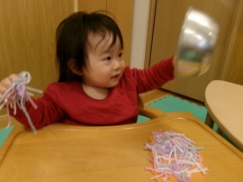 今日は未満児さんの保育参観がありました!と言ってもお母さんの姿が見えると傍に行きたくなる子ども達。その為保護者の皆さんには廊下からそ~っと参観していただきました!