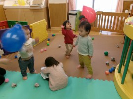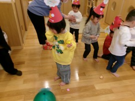 ボールを投げるよりも直接風船にパ~ンチ!で鬼に向かっていくお友だちもいました(笑) |