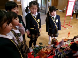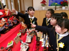 うれしいひなまつりの歌を思い出しながら、「三人官女はどこ?」「右大臣は?」と質問がたくさんとびだします。 |