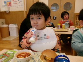 先日の給食は子ども達の大好きなフィッシュバーガ-☆ |