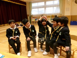 ひげじいさんやお弁当箱のうたなど、知っている手遊びもお姉さんと一緒にすると、いつも以上に楽しくて盛り上がりました(*^^*) |