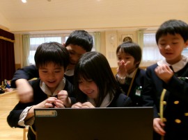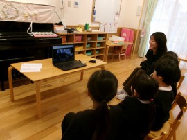 震災後のご縁で昨年も交流があった、東京の田園調布雙葉中学校の皆さん。今日は午後、年中、年長児が3年生の生徒さんたちとオンラインで交流を行いました🎵