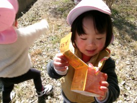 すずらん組さんも夢中でどんぐりや葉っぱを拾っていました |