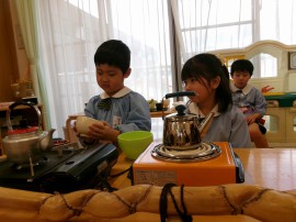 お茶会が無事に終わり、今度は子ども達もお茶をいただきました。 |
