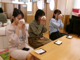 道田先生が点ててくださったおいしいお茶をいただき、大満足の様子でした🎵 |