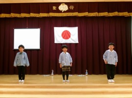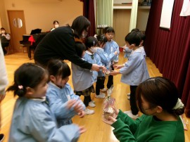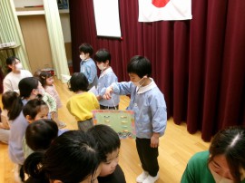 さくら組さんからはお返しに「さよならぼくたちのようちえん」の歌を聴かせてくれました。 |