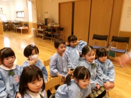 未満児さんからの出し物は「誰でしょうクイズ」 |