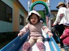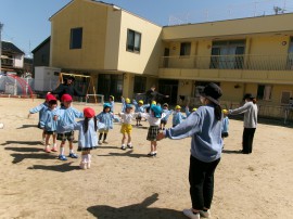 そして今日は初めてスモックに着替えたたんぽぽ組さん。朝から園庭で遊びました♪ |