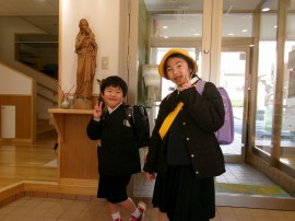昨日に続き卒園児さんが、制服姿を見せに来てくれました!